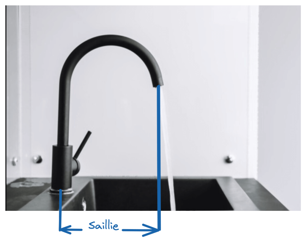 Que ce soit pour un mitigeur ou un robinet, la saillie désigne la longueur entre le centre du pied du robinet est le milieu du bec. C’est donc grâce à cette distance que vous saurez où le jet va arriver dans l’évier.